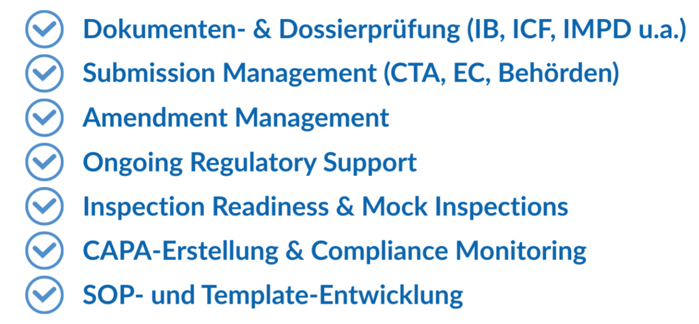 Wir verbinden regulatorisches Fachwissen mit operativer Praxis und sorgen dafür, dass Studien jederzeit prüfungsbereit, konsistent dokumentiert und regulatorisch abgesichert sind.